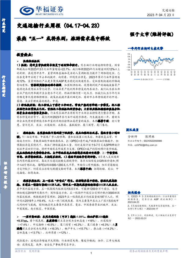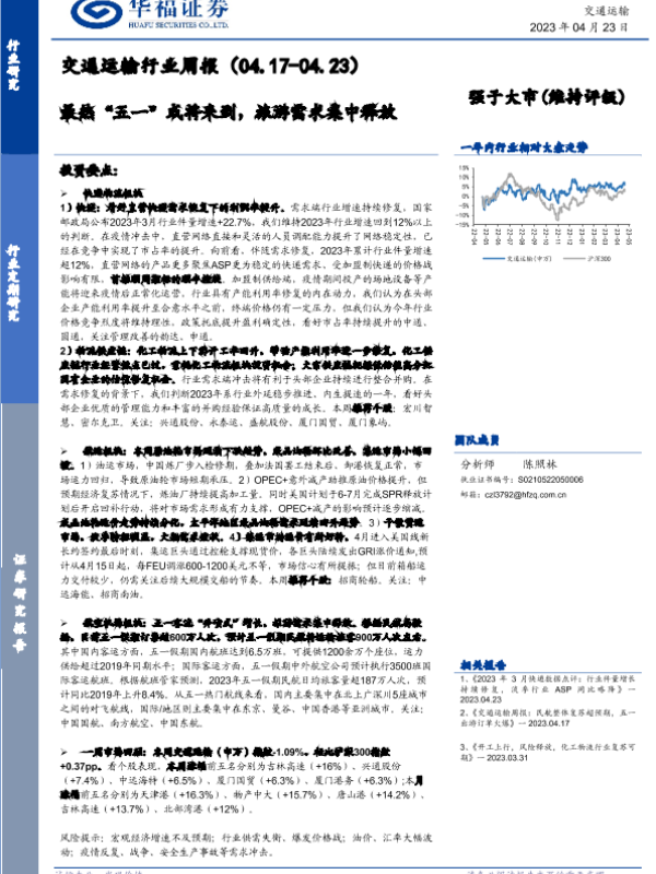 【华福证券】【20230423】最热“五一”或将来到,旅游需求集中释放-15页