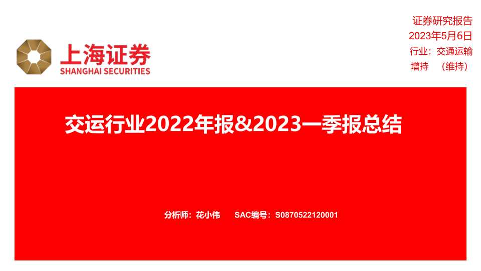 【上海证券】【20230506】交运行业2022年报&2023一季报总结-17页