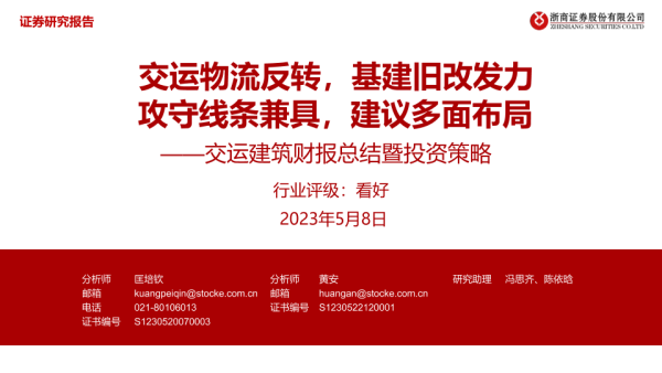 【浙商证券】【20230508】交运建筑财报总结暨投资策略-33页