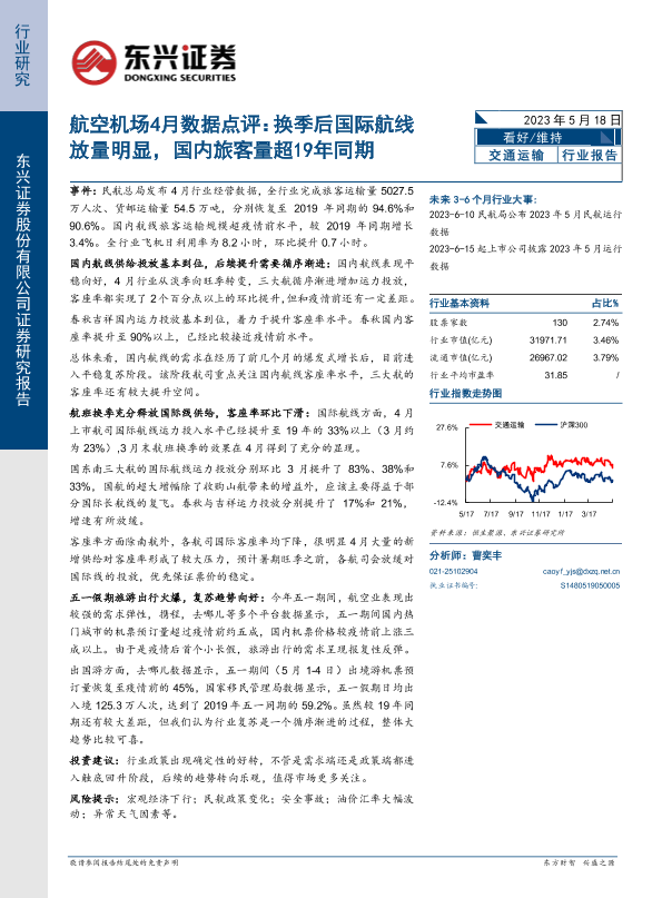 【东兴证券】【20230518】航空机场4月数据点评:换季后国际航线放量明显,国内旅客量超19年同期-10页