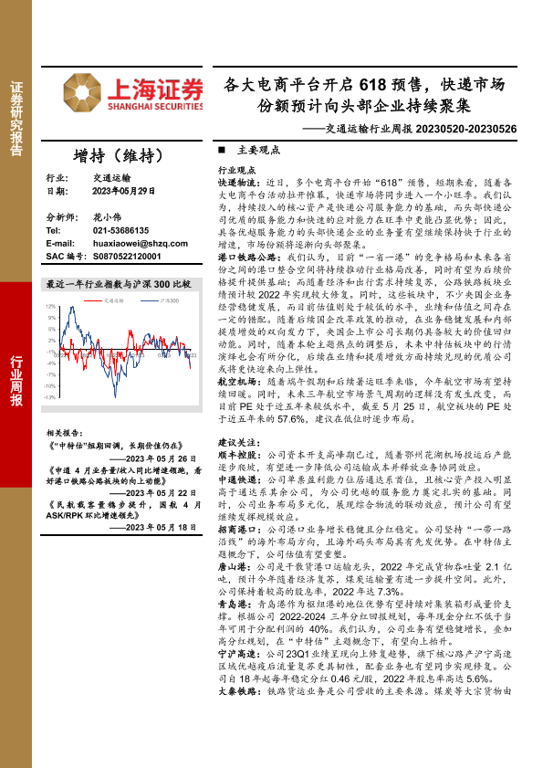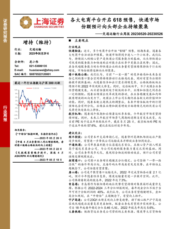【上海证券】【20230529】交通运输行业周报:各大电商平台开启618预售,快递市场份额预计向头部企业持续聚集-11页