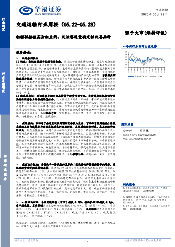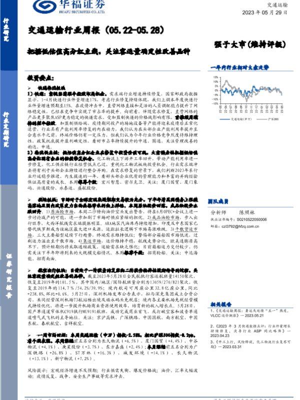 【华福证券】【20230529】交通运输行业周报:把握低估值高分红主线,关注客运量确定性改善品种-15页