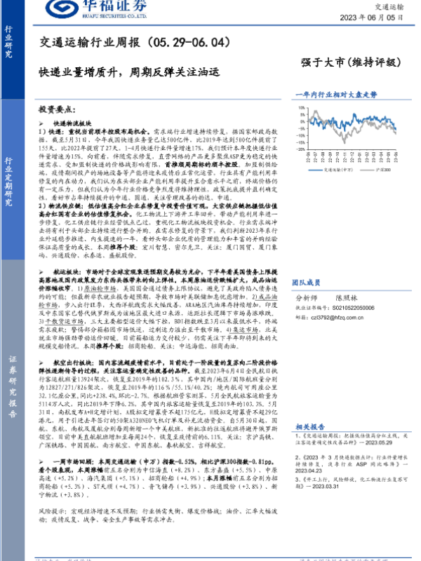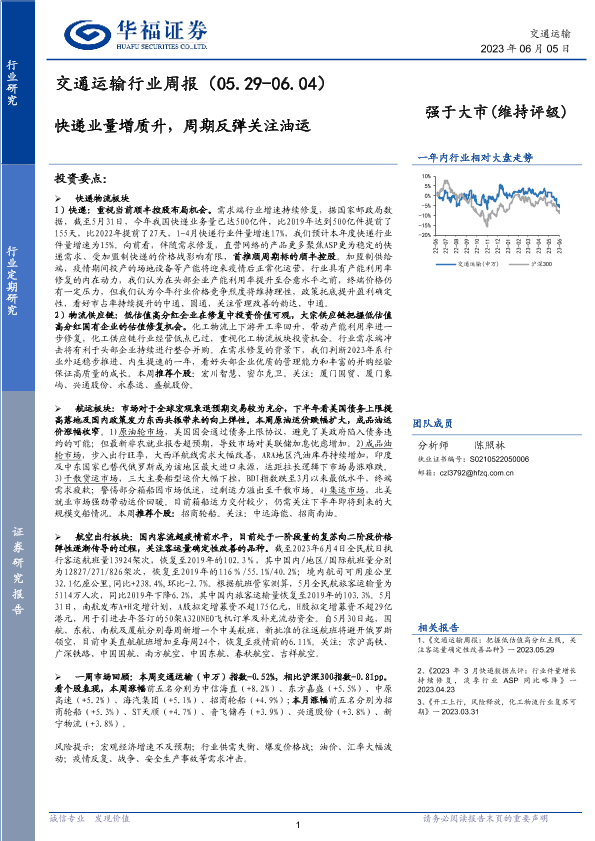 【华福证券】【20230605】交通运输行业周报:快递业量增质升,周期反弹关注油运-15页