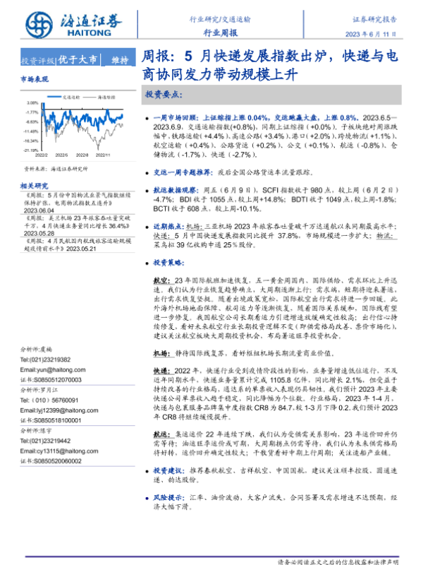 【海通证券】【20230611】5月快递发展指数出炉,快递与电商协同发力带动规模上升-10页