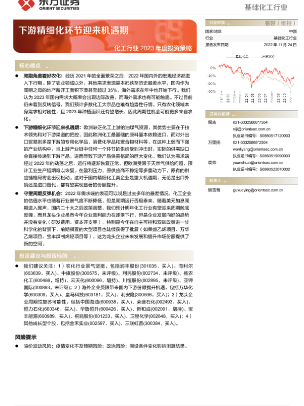 【东方证券】【20221124】化工行业2023年度投资策略:下游精细化环节迎来机遇期-39页