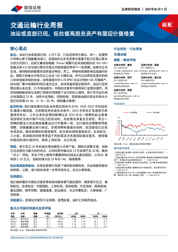 【国信证券】【20230611】交通运输行业周报:油运或底部已现,低估值高股息资产有望迎价值修复-16页