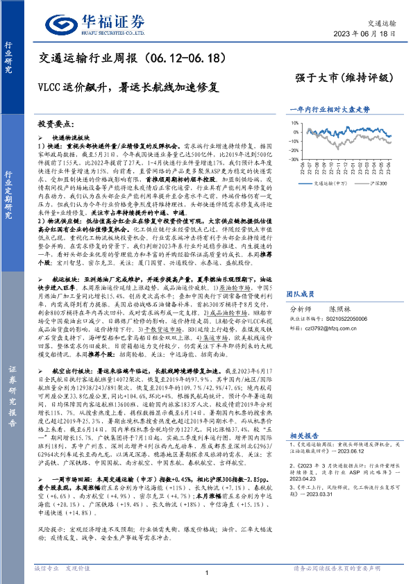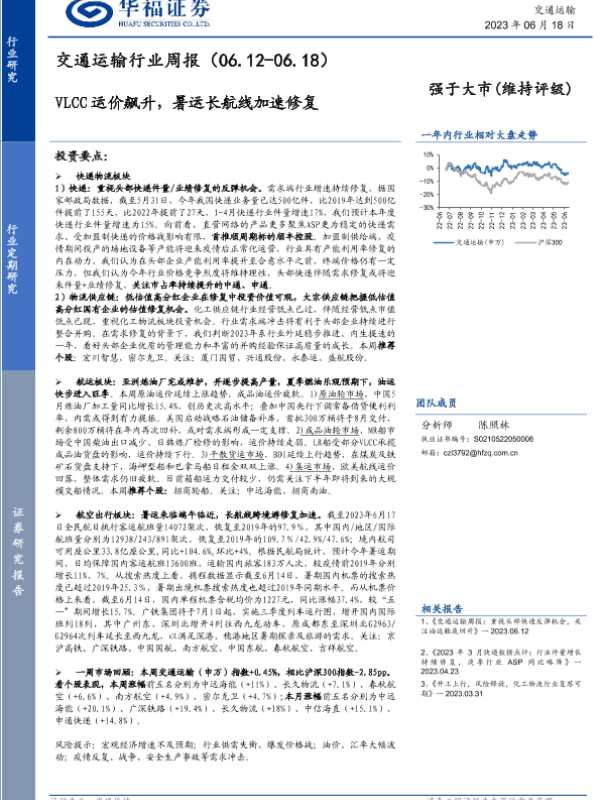 【华福证券】【20230618】交通运输行业周报:VLCC运价飙升,暑运长航线加速修复-15页