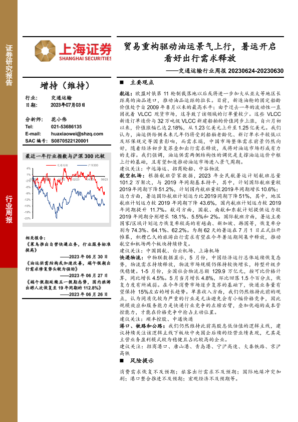 【上海证券】【20230703】交通运输行业周报:贸易重构驱动油运景气上行,暑运开启看好出行需求释放-10页