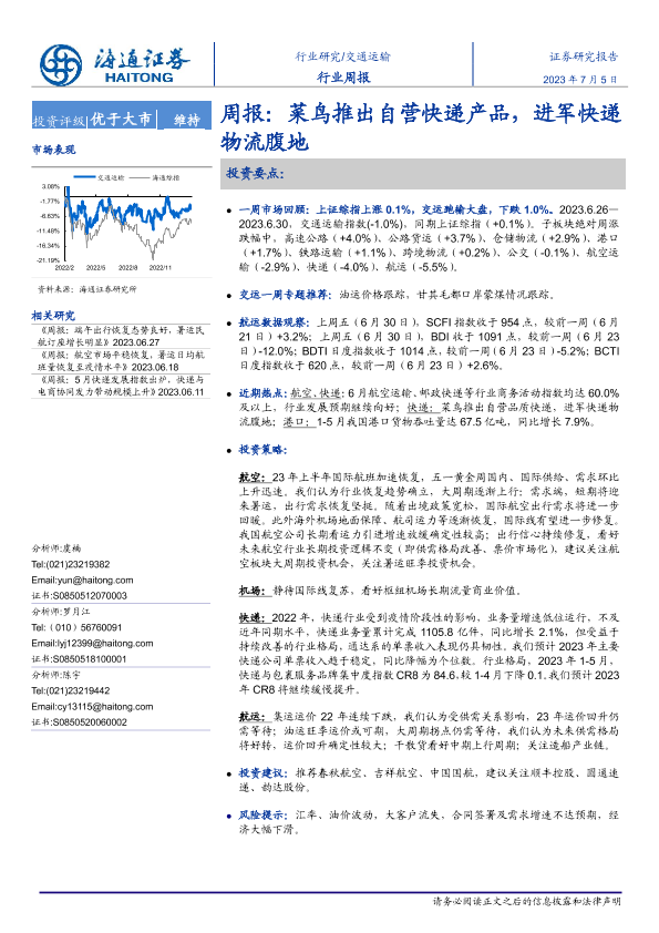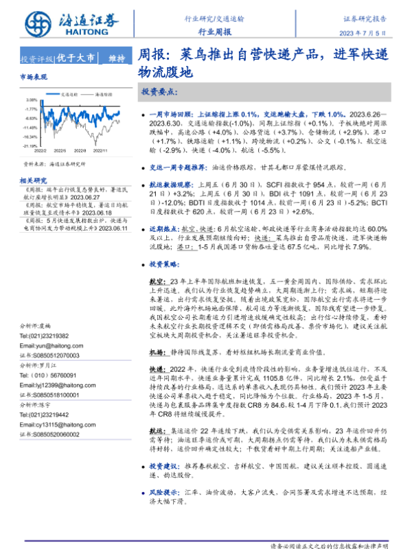 【海通证券】【20230705】交通运输行业周报:菜鸟推出自营快递产品,进军快递物流腹地-10页
