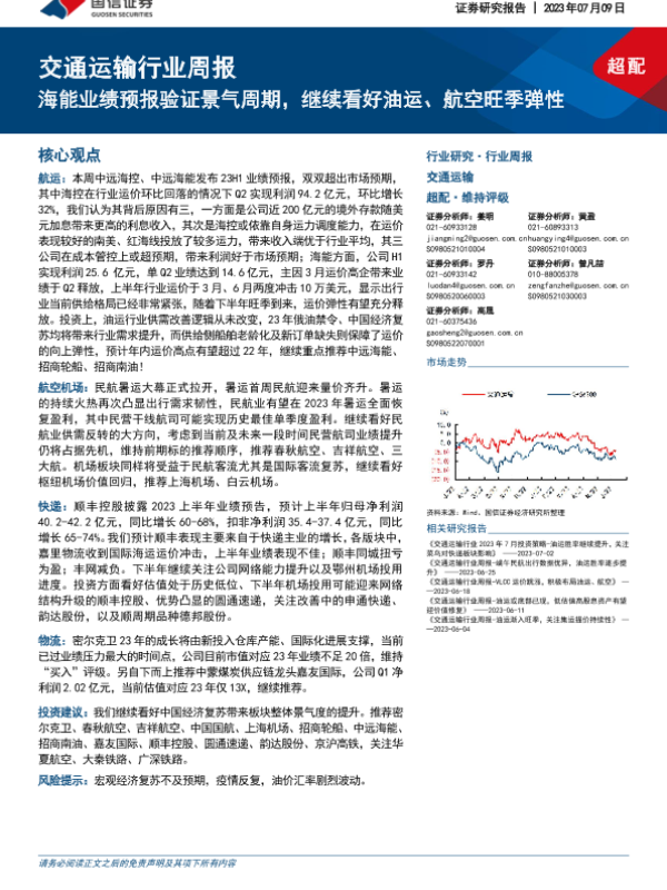 【国信证券】【20230709】交通运输行业周报:海能业绩预报验证景气周期,继续看好油运、航空旺季弹性-19页
