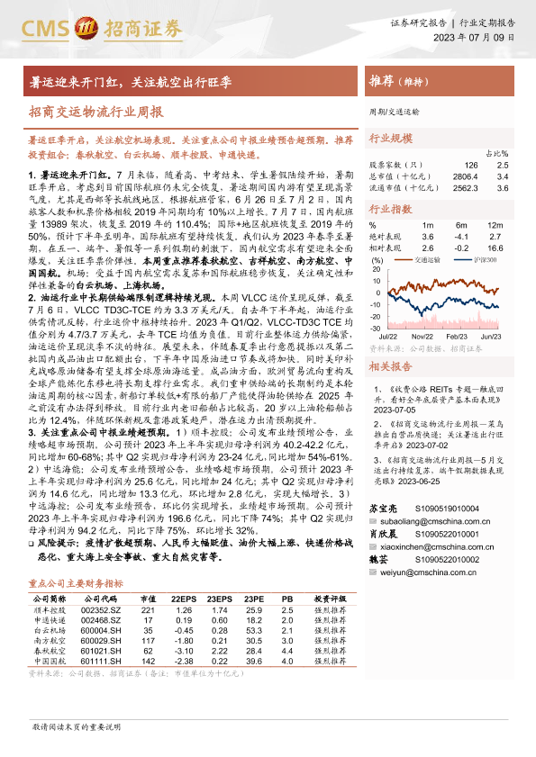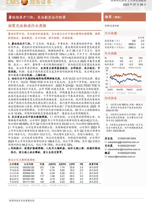 【海通证券】【20230709】招商交运物流行业周报:暑运迎来开门红,关注航空出行旺季-18页