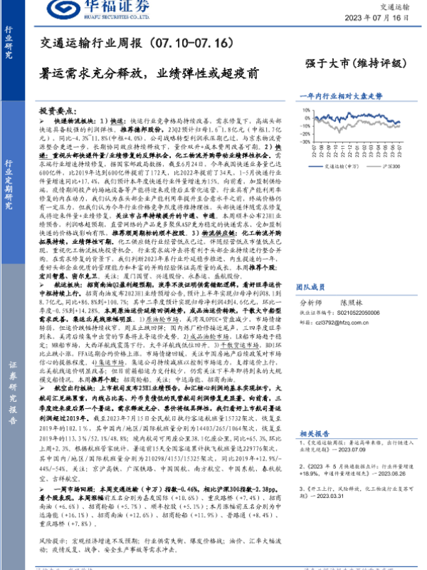 【华福证券】【20230716】交通运输行业周报:暑运需求充分释放,业绩弹性或超疫前-16页