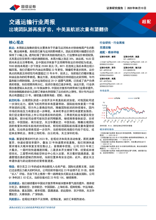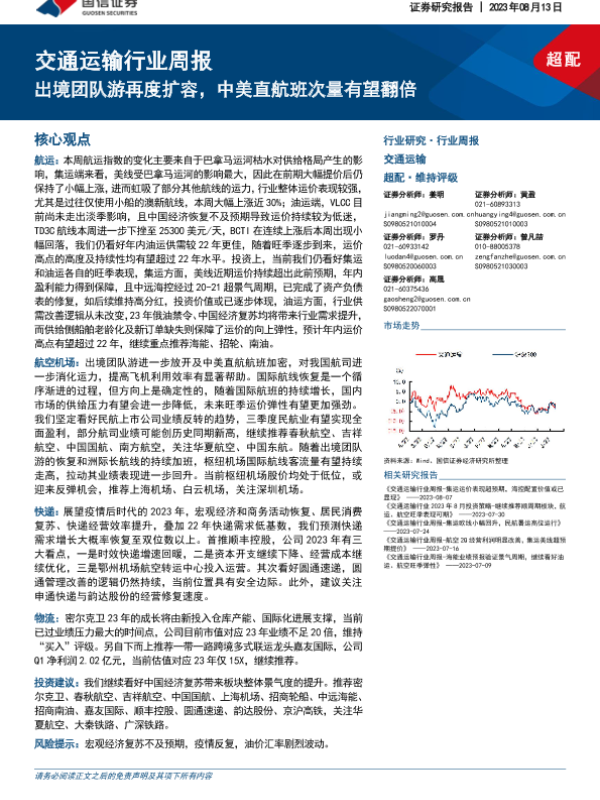 【国信证券】【20230813】交通运输行业周报:出境团队游再度扩容,中美直航班次量有望翻倍-19页