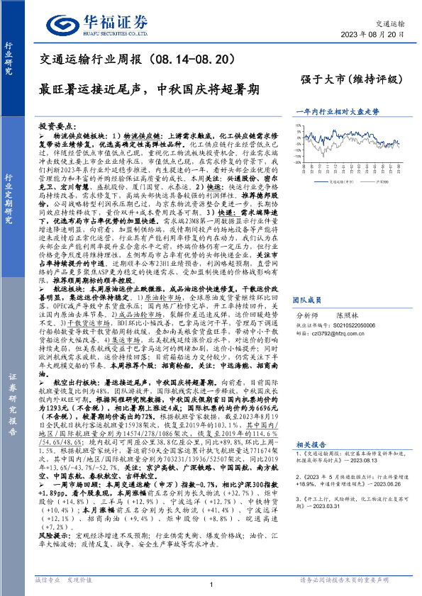 【华福证券】【20230820】最旺暑运接近尾声,中秋国庆将超暑期-15页