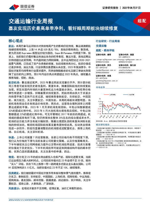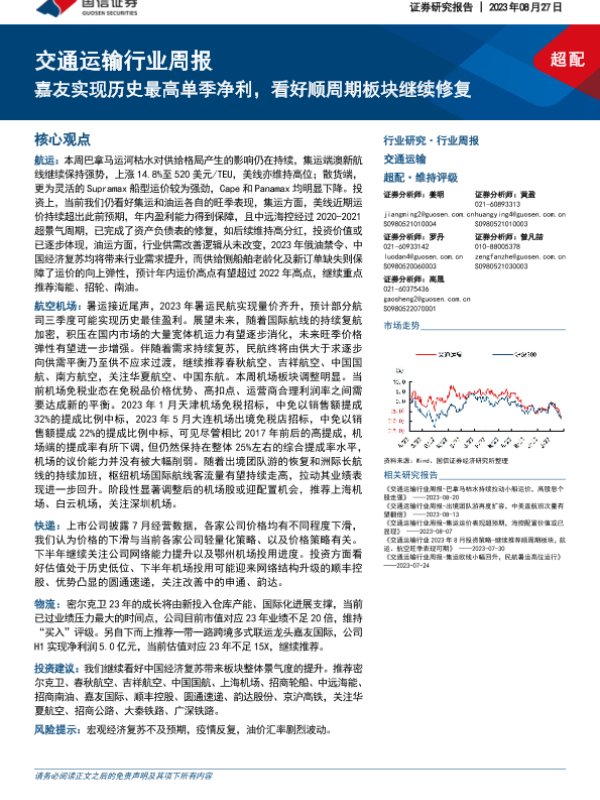 【国信证券】【20230827】交通运输行业周报:嘉友实现历史最高单季净利,看好顺周期板块继续修复-20页