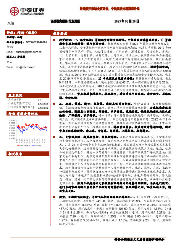 【中泰证券】【20230826】交运行业周报:暑期航空市场全面增长,中秋国庆出境需求升温-40页