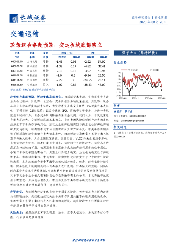 【长城证券】【20230828】交通运输行业周报:政策组合拳超预期,交运板块底部确立-14页