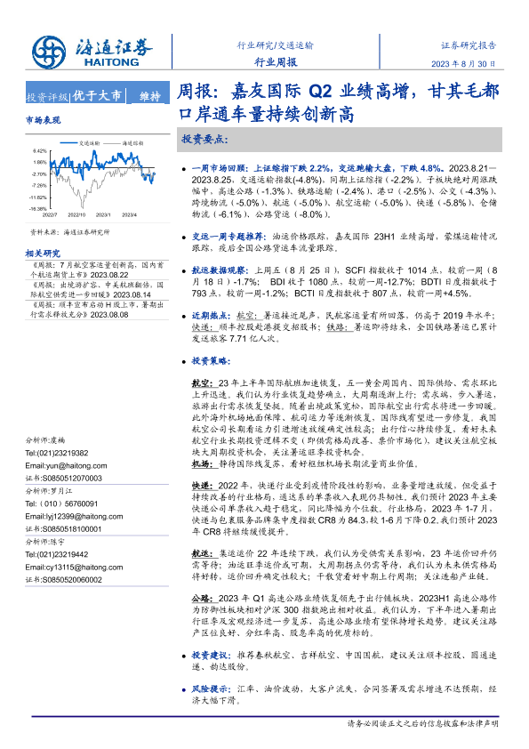 海通证券 交通运输仓储邮政 2023年 PDF 1.11 MB