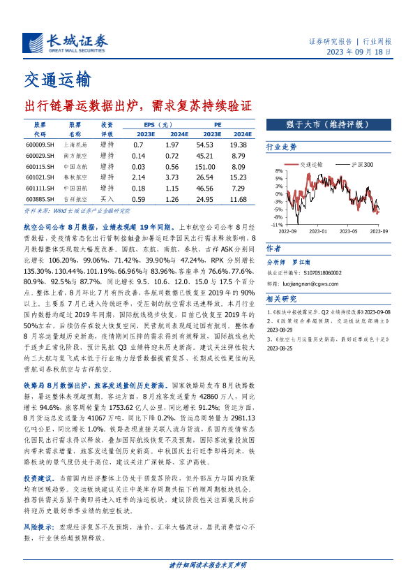 【长城证券】【20230918】交通运输行业周报:出行链暑运数据出炉,需求复苏持续验证-16页