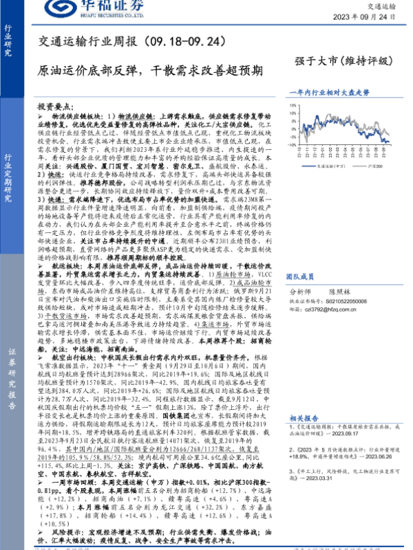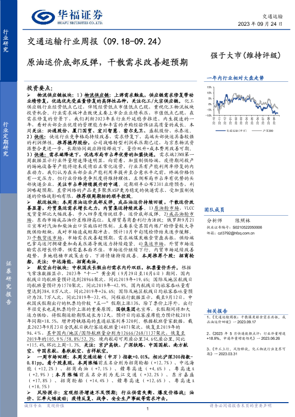 【华福证券】【20230924】交通运输行业周报:原油运价底部反弹,干散需求改善超预期-14页