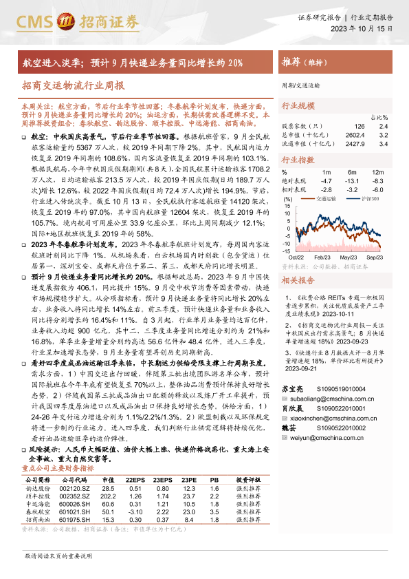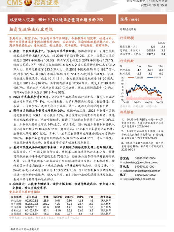 【海通证券】【20231015】招商交运物流行业周报:航空进入淡季;预计9月快递业务量同比增长约20%-17页