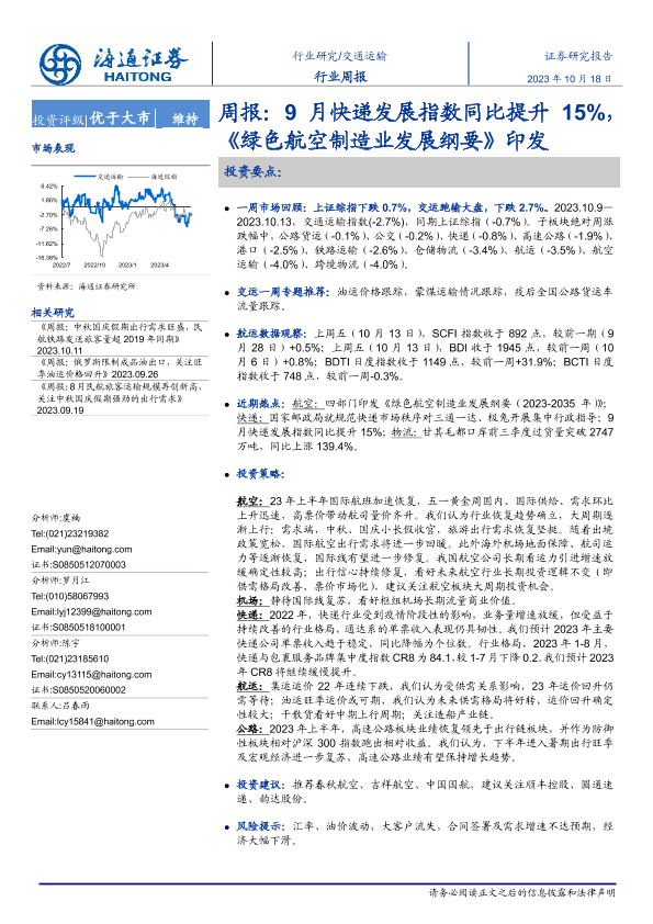【海通证券】【20231018】9月快递发展指数同比提升15%,《绿色航空制造业发展纲要》印发-11页