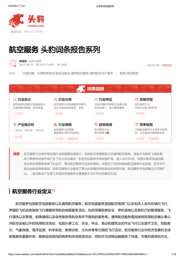 【头豹研究院】【2023】航空服务 头豹词条报告系列-18页