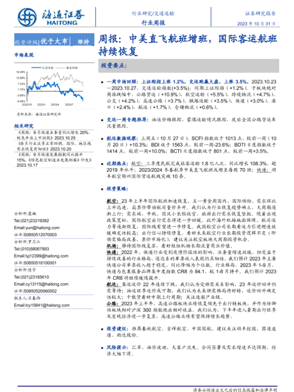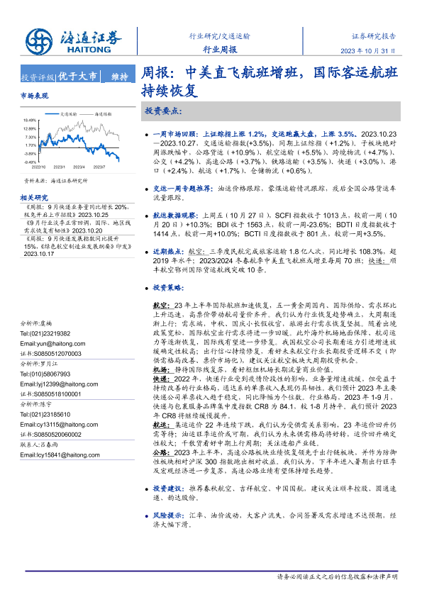 海通证券 交通运输仓储邮政 2023年 PDF 1.01 MB