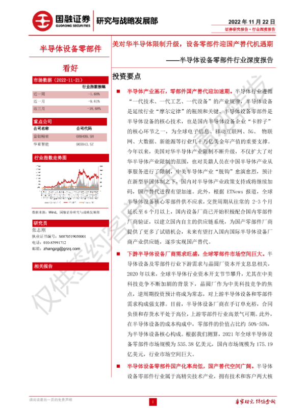 【国融证券】【20221122】半导体设备零部件行业深度报告:美对华半导体限制升级,设备零部件迎国产替代机遇期-27页