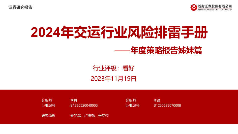【浙商证券】【20231119】2024年交运行业风险排雷手册-25页