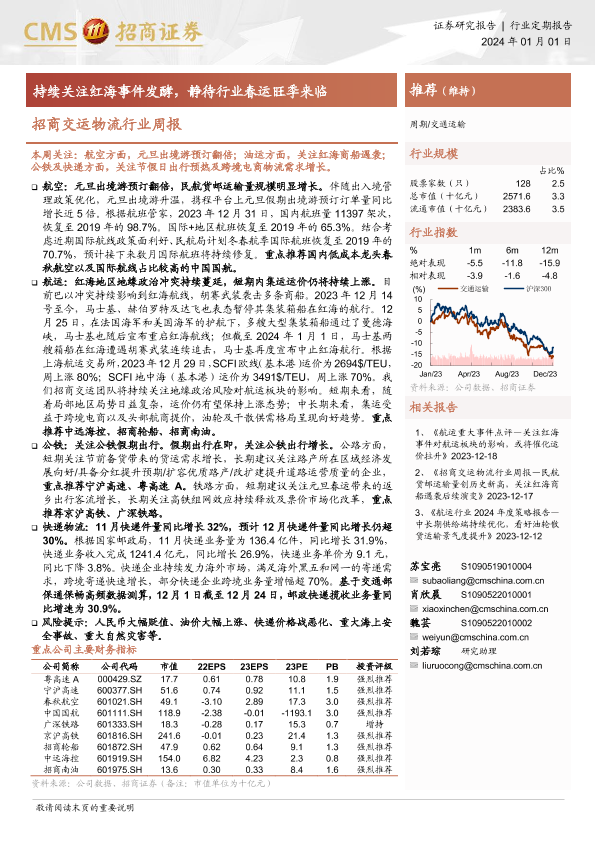 【海通证券】【20240101】招商交运物流行业周报:持续关注红海事件发酵,静待行业春运旺季来临-16页