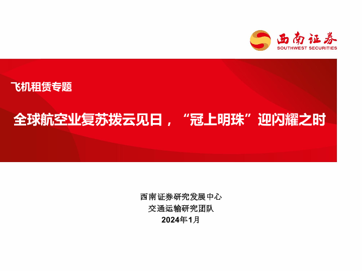 【西南证券】【20240111】飞机租赁专题:全球航空业复苏拨云见日,“冠上明珠”迎闪耀之时-35页