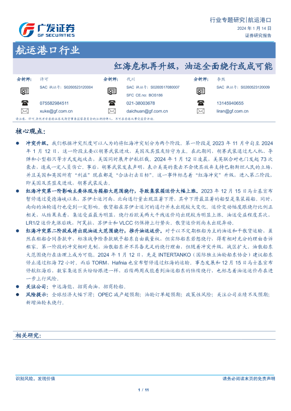 【广发证券】【20240114】航运港口行业专题研究:红海危机再升级,油运全面绕行或成可能-11页