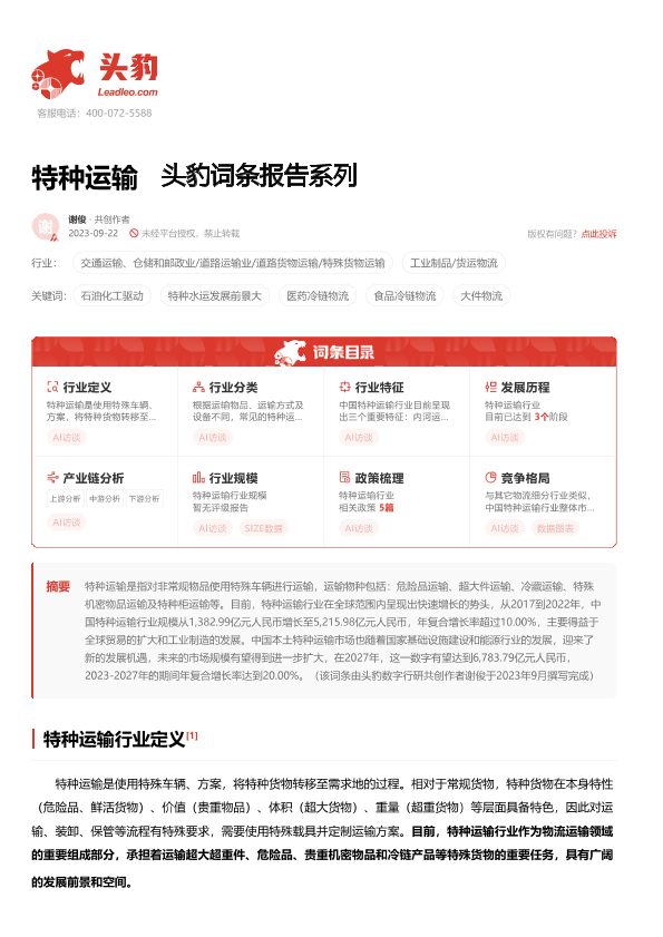 【头豹研究院】【20240111】特种运输 头豹词条报告系列-17页