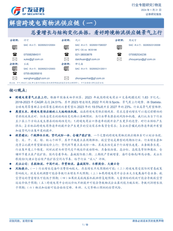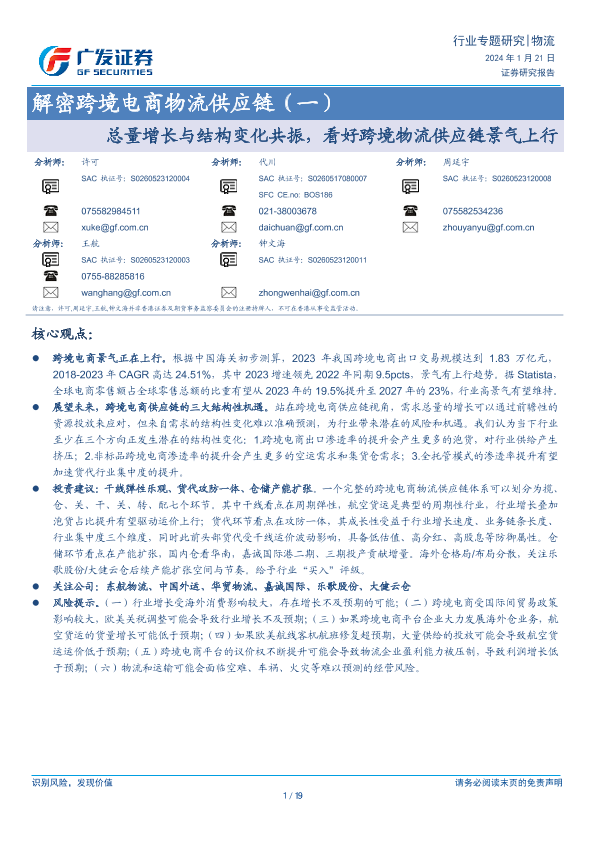 【广发证券】【20240121】解密跨境电商物流供应链(一):总量增长与结构变化共振,看好跨境物流供应链景气上行-19页