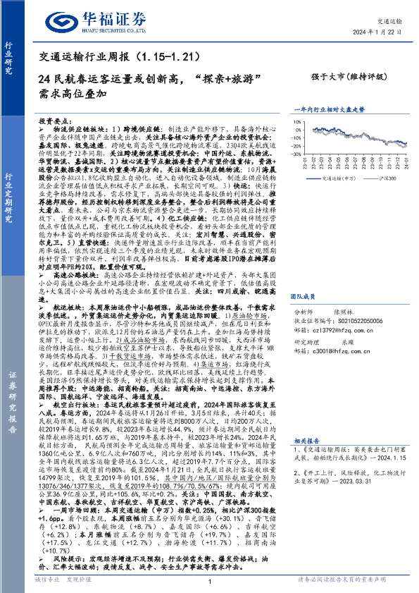 【华福证券】【20240122】交通运输行业周报:24民航春运客运量或创新高,“探亲+旅游”需求高位叠加-15页