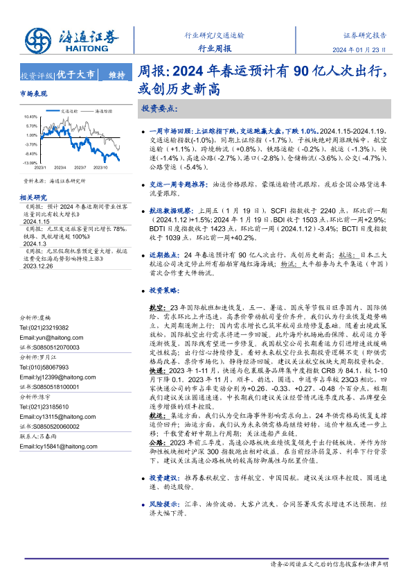 【海通证券】【20240123】2024年春运预计有90亿人次出行,或创历史新高-10页