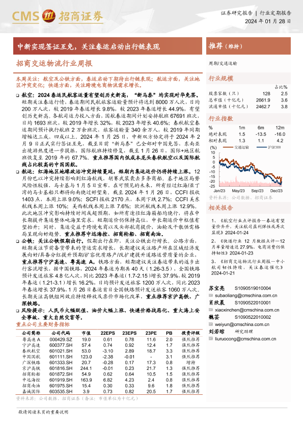 【海通证券】【20240128】招商交运物流行业周报:中新实现签证互免,关注春运启动出行链表现-16页