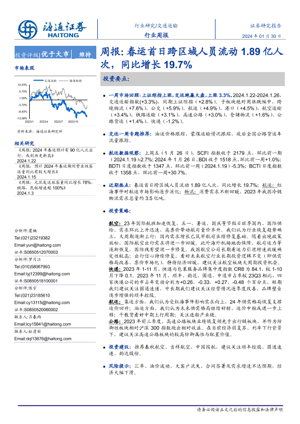 交通运输 春运 行业周报 证券研究报告 跨区域人员流动