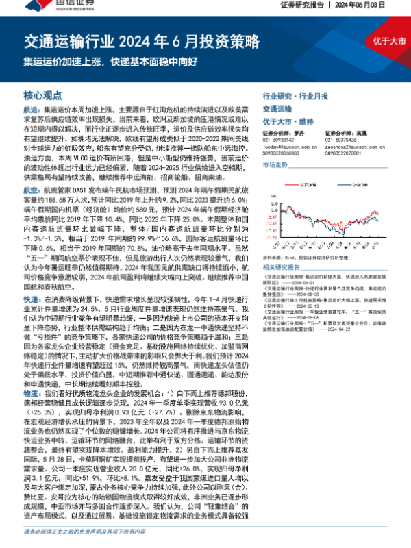 【国信证券】【20240603】交通运输行业2024年6月投资策略-22页