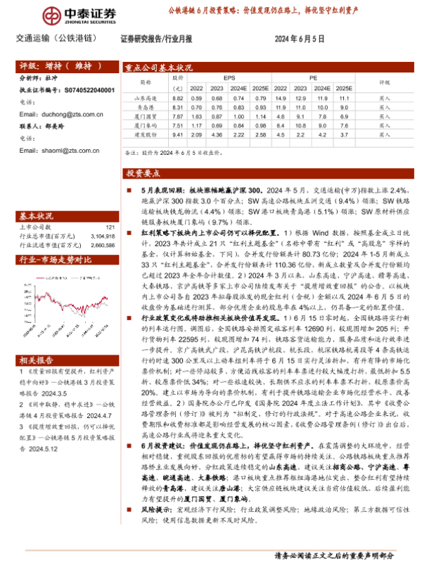 【中泰证券】【20240605】公铁港链6月投资策略:价值发现仍在路上,择优坚守红利资产-15页