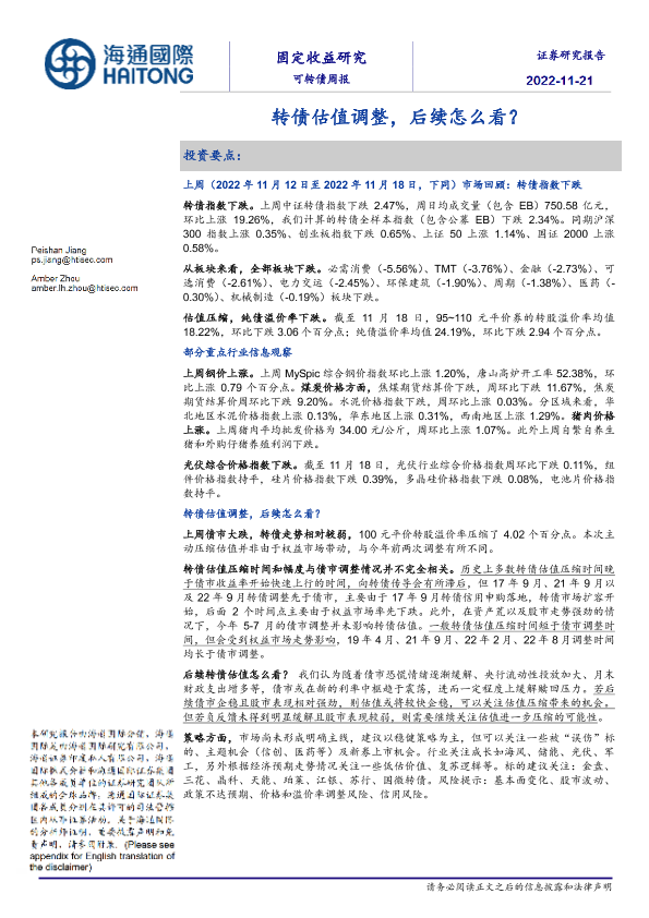 【海通证券】【20221121】可转债周报:转债估值调整,后续怎么看?-18页