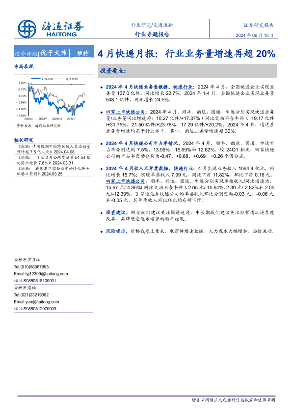 【海通证券】【20240615】4月快递月报:行业业务量增速再超20%-12页