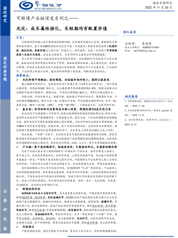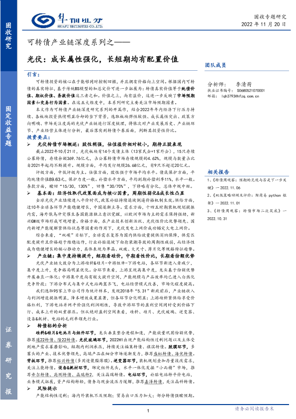 【华福证券】【20221120】可转债产业链深度系列之:光伏,成长属性强化,长短期均有配置价值-149页