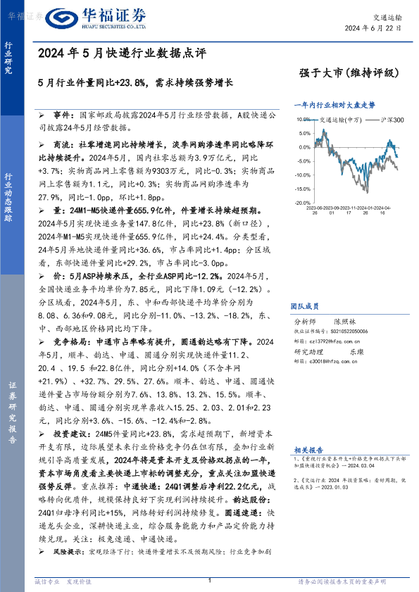 【华福证券】【20240622】2024年5月快递行业数据点评-10页