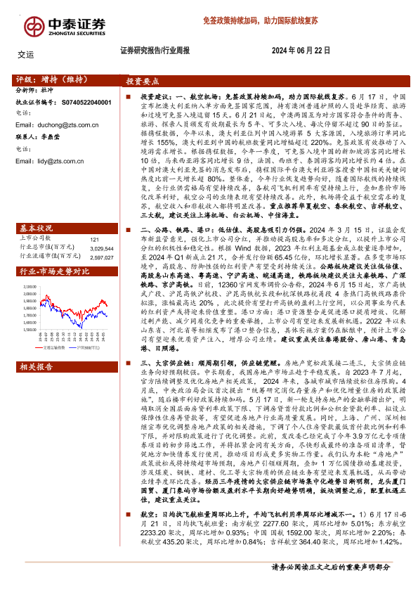 【中泰证券】【20240622】交运行业周报:免签政策持续加码,助力国际航线复苏-39页