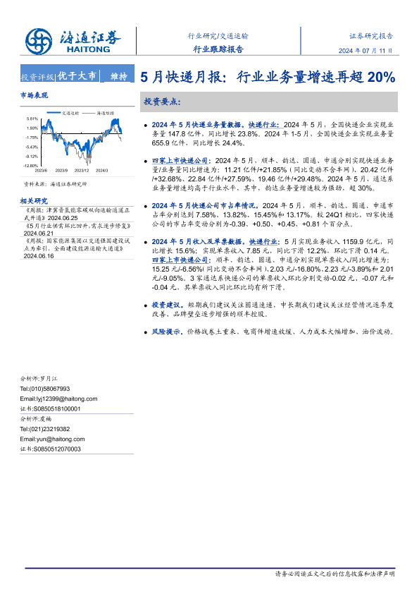 【海通证券】【20240711】5月快递月报:行业业务量增速再超20%-12页