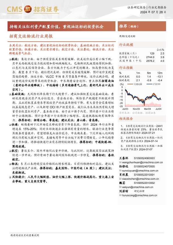 【海通证券】【20240728】招商交运物流行业周报:持续关注红利资产配置价值,重视油运标的投资机会-15页