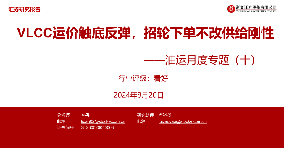 【浙商证券】【20240820】VLCC运价触底反弹,招轮下单不改供给刚性-35页