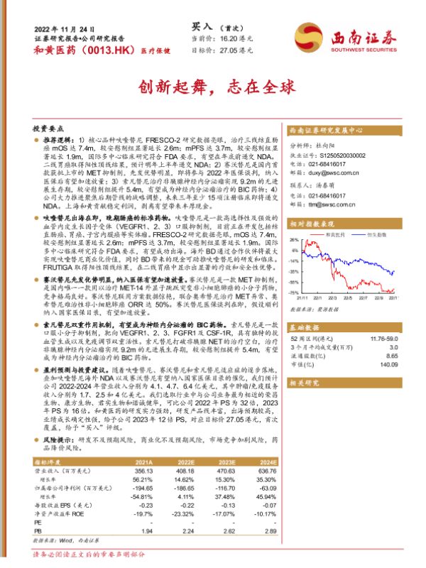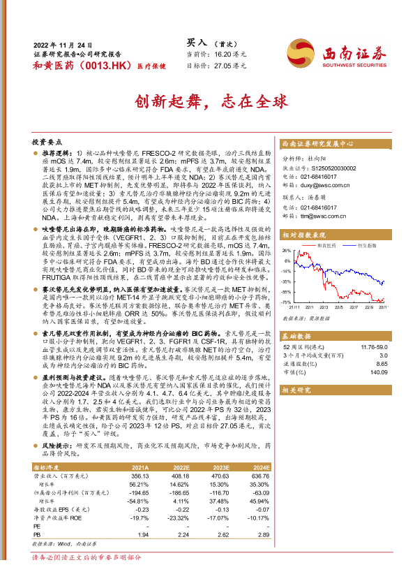 【西南证券】【20221124】和黄医药:创新起舞,志在全球-28页